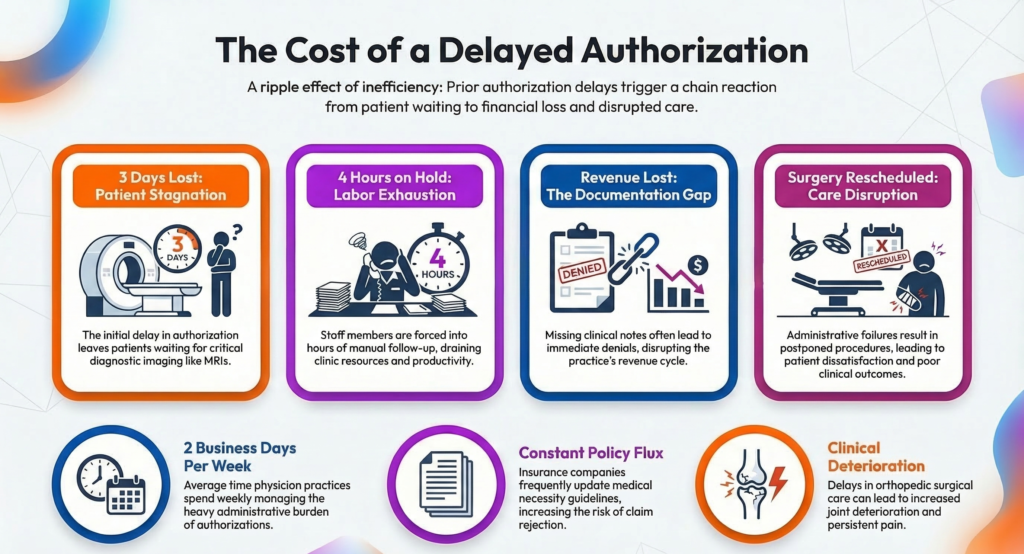 These prior authorization challenges in orthopedic practices significantly impact both operational efficiency and patient care.