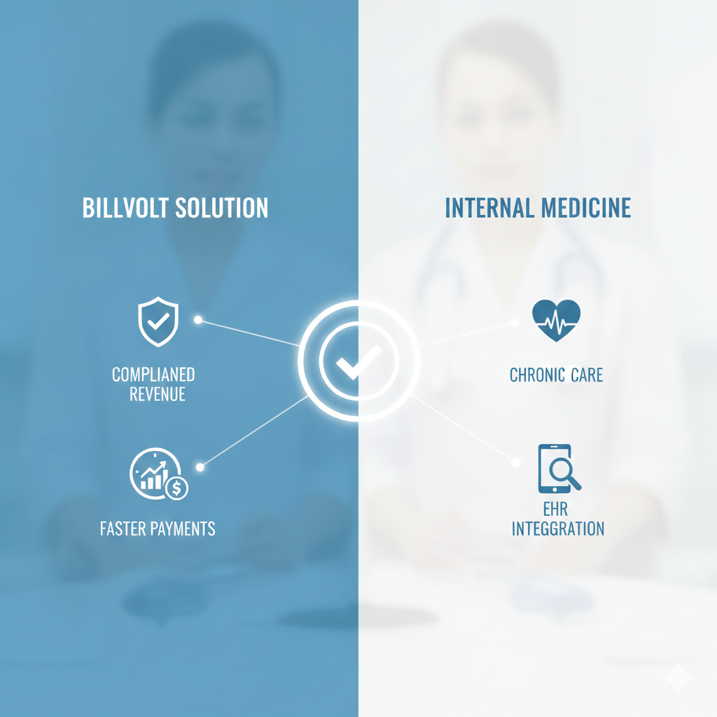 Internal medicine practices manage some of the most complex patient cases in healthcare often involving chronic conditions, multiple diagnoses, frequent follow-ups, and layered payer requirements. At BillVolt, we provide specialized internal medicine medical billing and revenue cycle management (RCM) designed to reduce denials, maximize reimbursements, and give physicians full financial visibility.