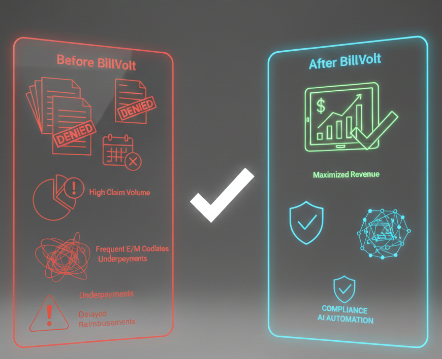 Unlike generic billing companies, our systems adapt to payer behavior, specialty‑specific patterns, and regulatory updates. BillVolt uses AI‑assisted workflows to identify billing risks before claims are submitted. This allows us to: